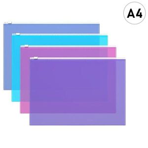 ZIP-пакет формата А4 из высококачественного полупрозрачного пластика с текстурой поверхности "апельсиновая корка", на которой не видно отпечатков пальцев и мелких царапин . Предназначен для хранения и транспортировки небольшого количества документов. Цвет ZIP-пакета – ассорти: бирюзовый, синий, фиолетовый, розовый. Удобная ZIP-молния обеспечивает быстрый доступ к бумагам. ZIP-пакет вмещает до 100 бумажных листов. Размер ZIP-пакета - 334х246мм, толщина материала - 0.14мм. Поставляется в различных вариантах цвета/дизайна без возможности выбора. Код и баркод на каждой единице товара.