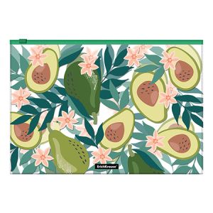 Папка на молнии " Erich Krause " A4 Zip Avocado Dusk ассорти, пластик 0,16мм, текстура поверхности- зеркало, полупрозрачная, с рисунком