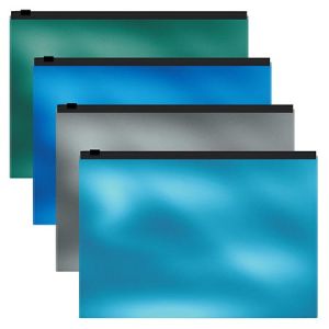 ZIP-пакет формата А4 из высококачественного непрозрачного пластика с текстурой поверхности "зеркало". Предназначен для хранения и транспортировки небольшого количества документов. Цвет ZIP-пакета - ассорти: голубой, серебряный, бирюзовый, синий. Удобная ZIP-молния обеспечивает быстрый доступ к бумагам. ZIP-пакет вмещает до 100 бумажных листов. Размер ZIP-пакета - 334х246мм, толщина материала - 0.18мм. Поставляется в различных вариантах цвета без возможности выбора. Код и баркод на каждой единице товара.