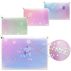Папка на молнии " KWELT " А4 Zip Планеты, пластиковая, внутри блёстки-звёздочки, с расширением, дизайн ассорти (без возможности выбора дизайна)