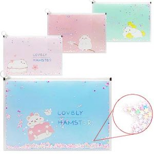 Папка на молнии " KWELT " А4 Zip Хомяк, пластиковая, внутри блёстки-звёздочки, с расширением, дизайн ассорти (без возможности выбора дизайна)