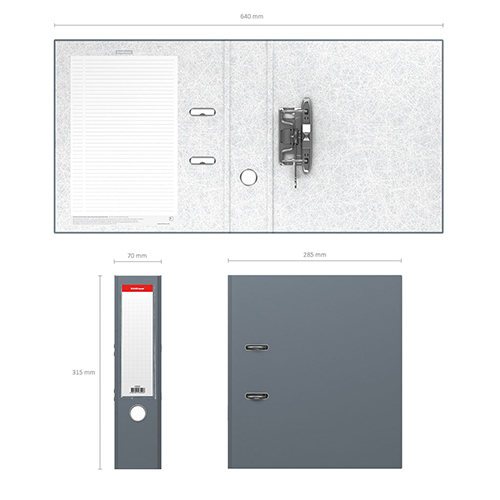 Папка - регистратор формата А4 снабжена стальным арочным механизмом с никелевым покрытием. Изготовлена из картона толщиной 1.75 мм, покрытого специальным износостойким материалом с фактурным тиснением. Корешок папки шириной 70 мм оснащен прозрачным пластиковым карманом со сменной этикеткой для маркировки. Для удобства использования на корешке имеется металлическое кольцо для захвата. Металлические фиксаторы удерживают папку в закрытом виде даже при максимальном наполнении. Вместительность до 450 листов бумаги плотности 80 г/м. На форзаце есть шаблон для оглавления.