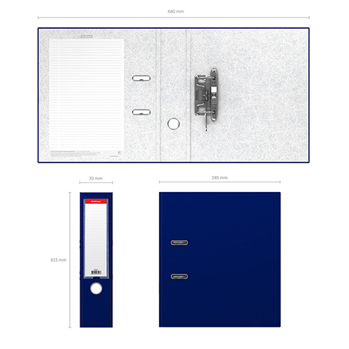 Папка - регистратор формата А4 снабжена стальным арочным механизмом с никелевым покрытием. Изготовлена из картона толщиной 1.75 мм, покрытого специальным износостойким материалом с фактурным тиснением. Корешок папки шириной 70 мм оснащен прозрачным пластиковым карманом со сменной этикеткой для маркировки. Для удобства использования на корешке имеется металлическое кольцо для захвата. Металлические фиксаторы удерживают папку в закрытом виде даже при максимальном наполнении. Вместительность до 450 листов бумаги плотности 80 г/м. На форзаце есть шаблон для оглавления.