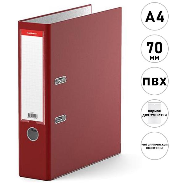 Папка-регистратор А4 " Erich Krause " Business сборная 70мм бордовая, ПВХ, пластиковый карман со сменной этикеткой, металлическая окантовка