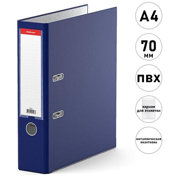 Папка-регистратор А4 " Erich Krause " Business сборная 70мм синяя, ПВХ, пластиковый карман со сменной этикеткой, металлическая окантовка