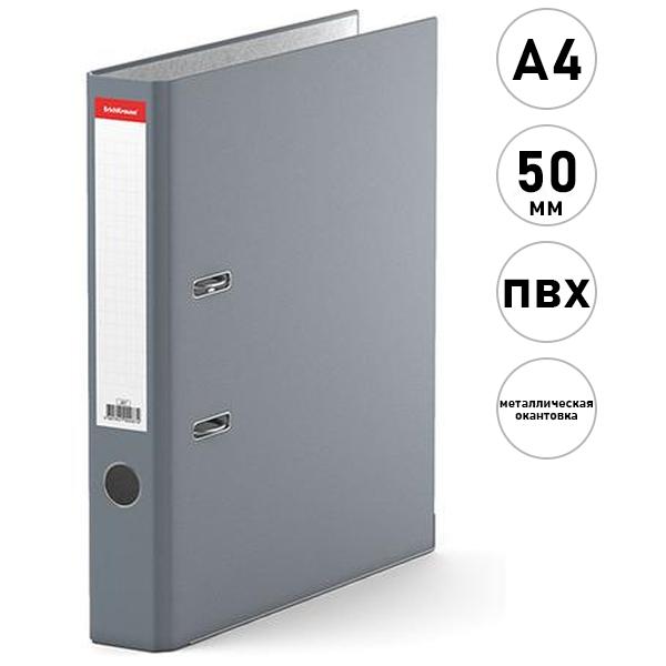 Папка-регистратор А4 " Erich Krause " Стандарт сборная 50мм серая, ПВХ, этикетка для маркировки, металлическая окантовка