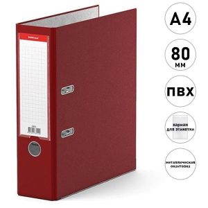 Папка-регистратор А4 " Erich Krause " Business сборная 80мм бордовая, ПВХ, пластиковый карман со сменной этикеткой, металлическая окантовка