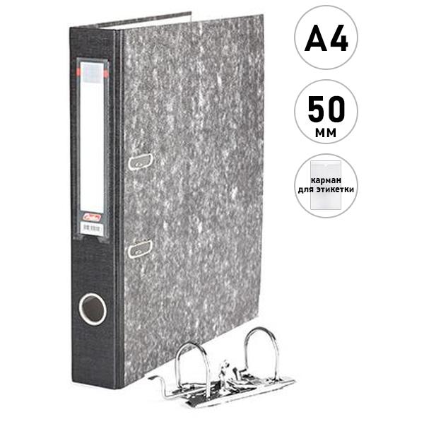 Папка-регистратор А4 " Hatber " сборная 50мм серый мрамор, ламинированный картон, пластиковый карман со сменной этикеткой, черный корешок