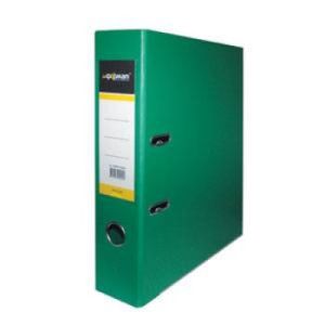 Папка-регистратор формата A4 изготовлена из качественного картона, покрытого с двух сторон покрытием PVC. Нижний край папки защищен металлическим кантом, предохраняющим ее от износа. Металлический арочный механизм съемный. На корешке папки имеется карман со сменной этикеткой для маркировки и кольцо для удобства захвата. Прорези на крышке папки удерживают ее, даже при большом количестве документов.
