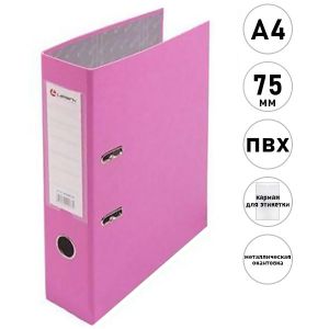 Папка-регистратор А4 " Lamark " сборная 75мм розовая, ПВХ, пластиковый карман со сменной этикеткой, металлическая окантовка