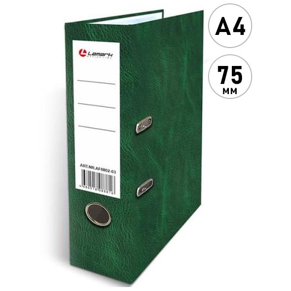 Папка-регистратор А4 " Lamark " сборная 75мм Кожа, зеленая, ламинированный картон, этикетка для маркировки