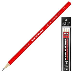 Набор карандашей ч/гр " ВКФ " Чертежник 3шт 2Т (2Н), ТМ (НВ), 2М (2В0, шестигранные, деревянные, заточенные