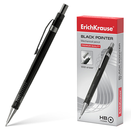 Карандаш механический " Erich Krause " Black Pointer 0,5мм, пластиковый, металлический наконечник и клип, сменный ластик