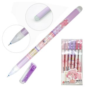 Ручка пиши-стирай " KWELT " Девочка, гелевая 0,5мм синяя, с силиконовым ластиком, ассорти 3 дизайна, колпачок с клипом-зайцем, пластиковая упаковка