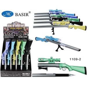 Ручка шариковая " Basir " Ружье с прицелом-фонариком, в дисплее синяя 0,5мм, толщина письма 0,25мм, чернила на масляной основе, корпус в виде дула, цвет корпуса - ассорти