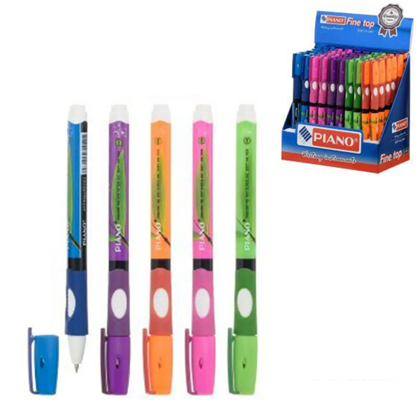 Ручка шариковая " Piano " для правшей в дисплее синяя 0,7мм, толщина письма 0,35мм, трехгранная, резиновый держатель, чернила на масляной основе, цветной непрозрачный корпус (5цв)