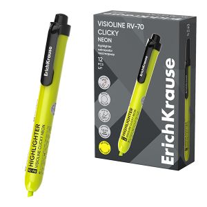 Текстовыделитель автоматический 1-3,5мм, неон, желтый, Visioline RV-70 Clicky " Erich Krause " картонная упаковка