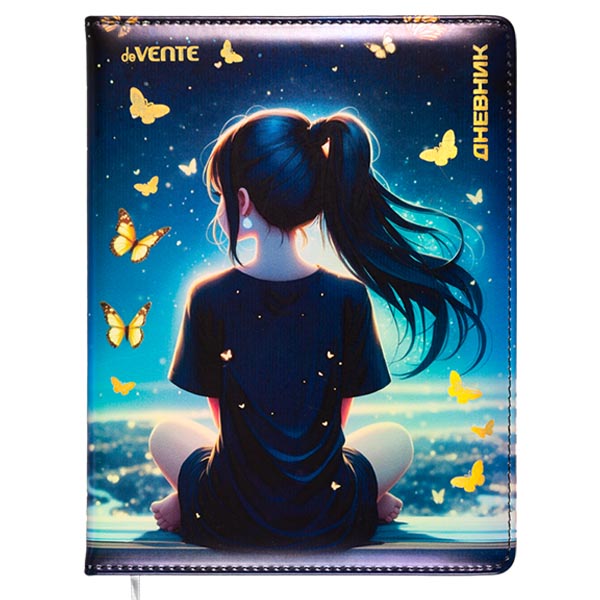 Дневник 1-11 класс искусственная кожа " deVente " Butterfly Dreams, блок- офсет 80г/м2, печать в 1 краску, тиснение фольгой, отстрочка ляссе, 48л