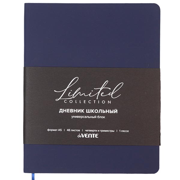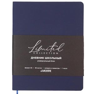 Дневник "deVENTE. Nobile" универсальный блок, 48 листов, белая бумага 80 г/м², печать в 1 краску, мягкая обложка из искусственной кожи soft touch, 1 ляссе, темно-синий.