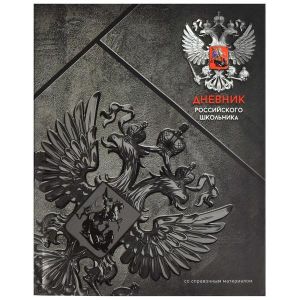 Дневник российского школьника, А5+, 48 л, интегральный переплёт, конгрев, выборочный УФ-лак, матовая ламинация.