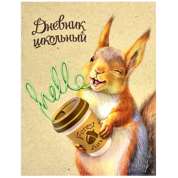 Дневник 1-11 класс интегральный " Феникс " Озорной бельчонок, матовый ламинированный картон, конгрев, выборочный УФ-лак, 48л