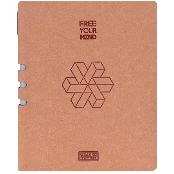 Дневник 1-11 класс искусственная кожа интегральный " Проф-Пресс " Геометрия иллюзий. Персиковый, термотиснение, тонированный блок, ляссе, шариковая ручка в комплекте, 48л