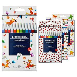 Фломастеры " Bruno Visconti " HappyColor 12цв круглые, вентилируемый колпачок, 4 дизайна (без возможности выбора дизайна), картонная упаковка, европодвес