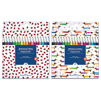 Фломастеры " Bruno Visconti " HappyColor 18цв, круглые, вентилируемый колпачок, 4 дизайна (без возможности выбора дизайна), картонная упаковка, европодвес
