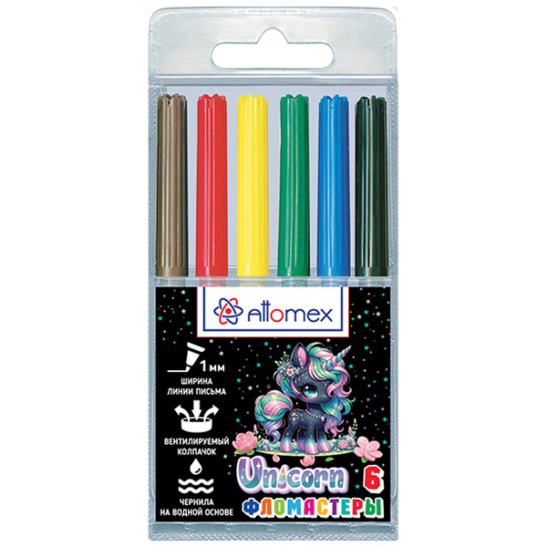 Фломастеры " deVente " Unicorn 6цв круглые, вентилируемый колпачок, пластиковый блистер, европодвес