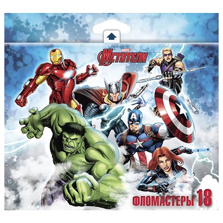 Фломастеры "Hatber " VK Marvel Мстители 18цв круглые, вентилируемый колпачок, картонная упаковка, европодвес