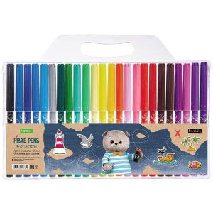 Фломастеры " Hatber " ECO Кот Басик 24цв круглые, вентилируемый колпачок, картонная упаковка, европодвес