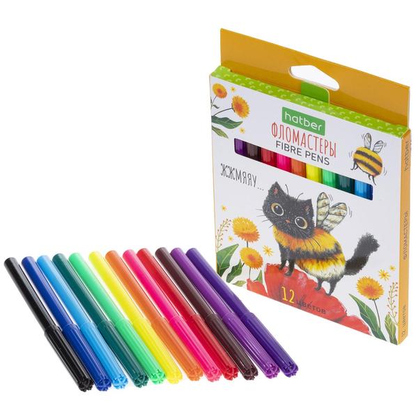 Фломастеры " Hatber " ECO Жж-Мяу 12цв круглые, вентилируемый колпачок, картонная упаковка, европодвес