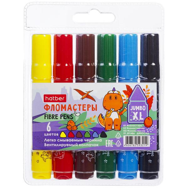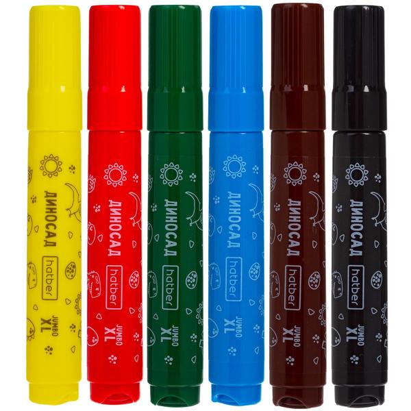 Фломастеры " Hatber " Jumbo-Xl Диносад 6цв круглые, утолщенные, вентилируемый колпачок, блистер, европодвес