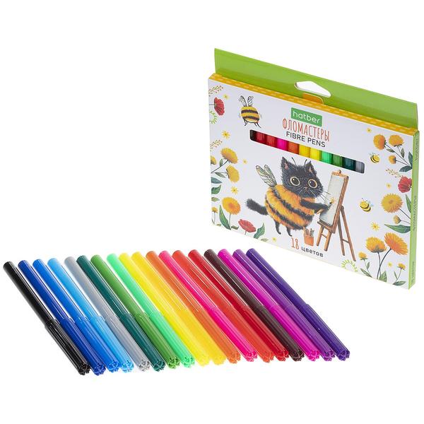 Фломастеры " Hatber " ECO Жж-Мяу 18цв круглые, вентилируемый колпачок, картонная упаковка, европодвес