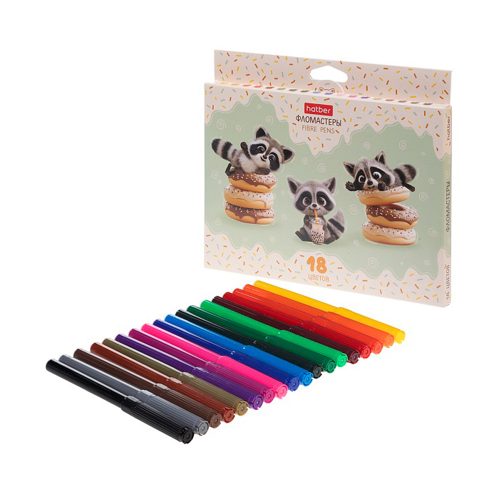 Фломастеры " Hatber " Вот Енот 18цв круглые, вентилируемый колпачок, картонная упаковка, европодвес