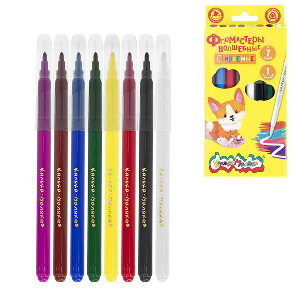 Новые фломастеры Каляка-Маляка® - это 7 ярких цветов, легко исчезающих с бумаги, с помощью волшебного белого фломастера-поглотителя. Дети в восторге от таких экспериментов, ведь на их глазах творится настоящее волшебство!