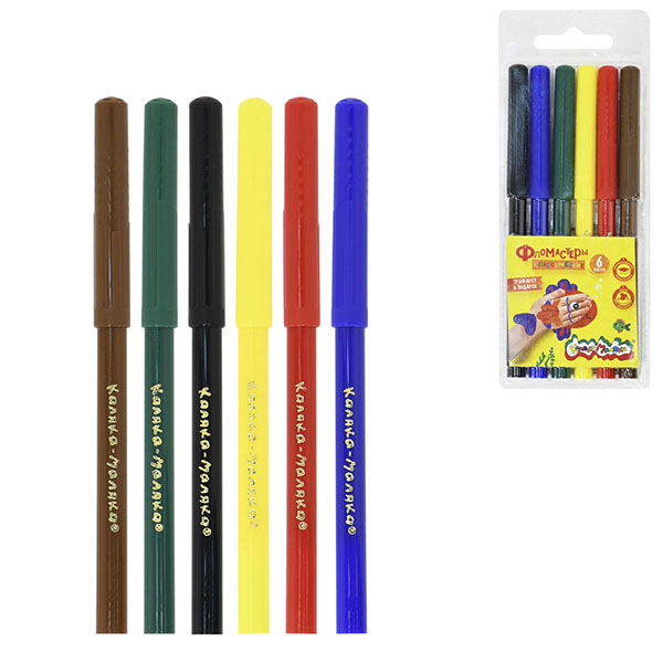 Фломастеры " Каляка-Маляка " 6цв смываемые, на водной основе, круглые, вентилируемый колпачок, ПВХ упаковка, европодвес
