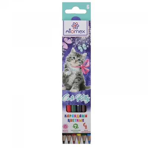 Карандаши " Attomex " Cute Kitty 6цв М шестигранные, деревянные, картонная упаковка, европодвес