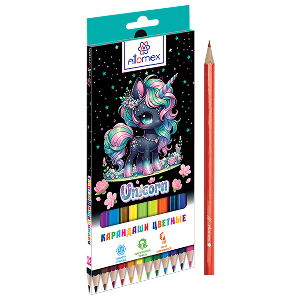 Карандаши цветные пластиковые "Attomex. Unicorn " 12 цветов, М, диаметр грифеля 2,8 мм, шестигранные, в картонной коробке