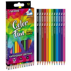 Карандаши цветные деревянные Color Fun 12цв " deVente " 4М трехгранные, картонная упаковка, европодвес
