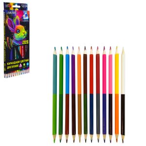 Карандаши цветные двухсторонние "deVENTE. Triolino Ultra 4М" 12 штук - 24 цвета, 4М, диаметр грифеля 3 мм, трёхгранные, в картонной коробке с эффектом Velvet Touch