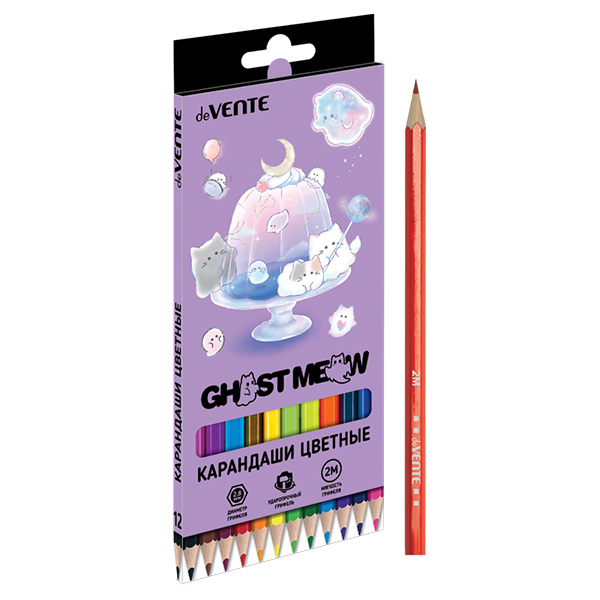 Карандаши цветные деревянные Ghost Meow 12цв " deVente " 2М шестигранные, картонная упаковка, европодвес