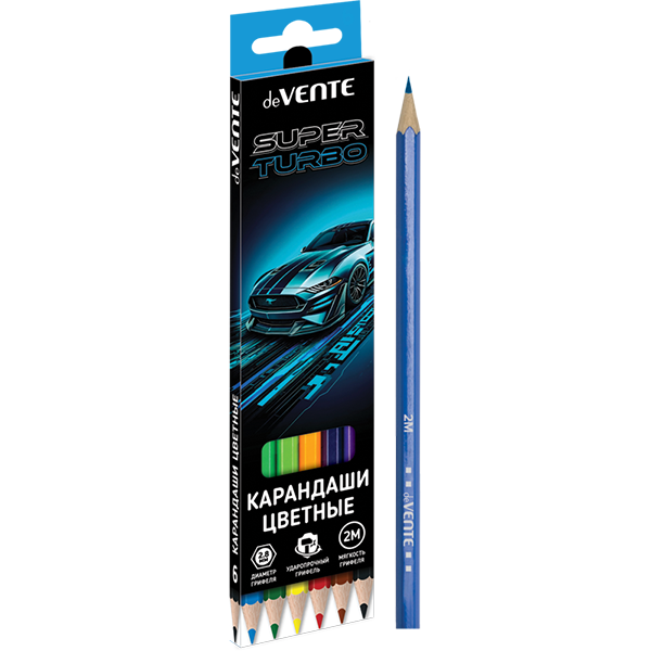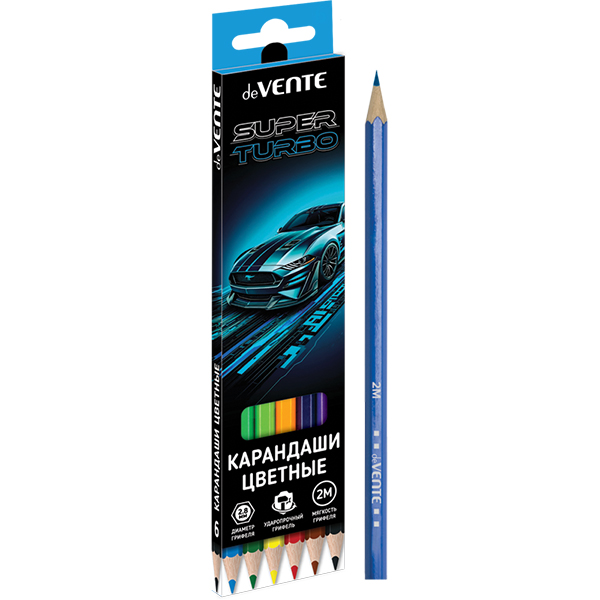 Карандаши цветные деревянные Super Turbo 06цв " deVente " 2М шестигранные, картонная упаковка, европодвес