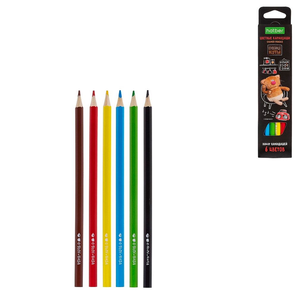 Карандаши цветные деревянные ECO Кофейные коты 06цв " Hatber " шестигранные, картонная упаковка, европодвес