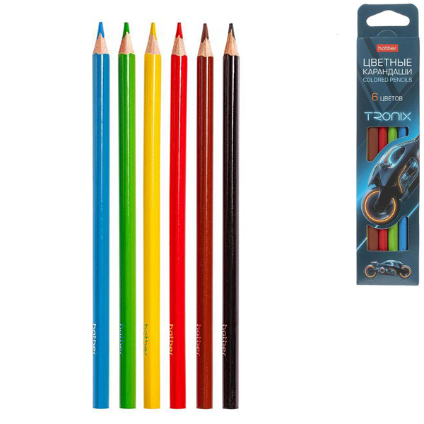Карандаши цветные деревянные Tronix 06цв " Hatber " трехгранные, картонная упаковка, европодвес