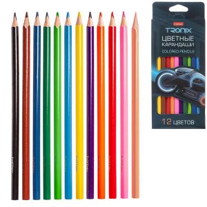Карандаши цветные деревянные Tronix 12цв " Hatber " трехгранные, картонная упаковка, европодвес