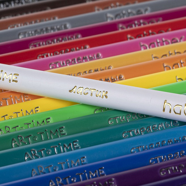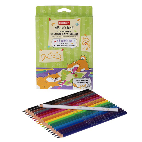 Карандаши цветные пластиковые с карандашом-ластиком Art-Time 18цв " Hatber " трехгранные, картонная упаковка, европодвес
