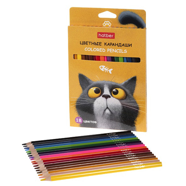 Карандаши цветные деревянные Пушистый философ 18цв " Hatber " трехгранные, картонная упаковка, европодвес