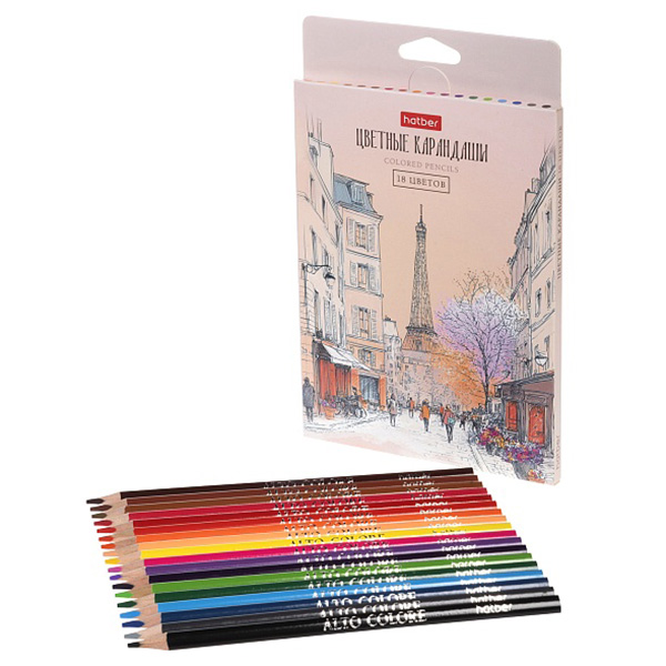 Карандаши цветные деревянные Alto Colore 18цв " Hatber " трехгранные, картонная упаковка, европодвес