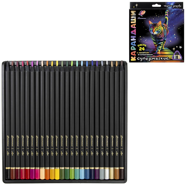 Карандаши цветные черное дерево Фантазия 24цв " Луч " трехгранные, картонная упаковка, европодвес